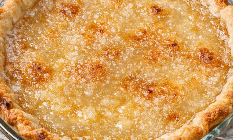 Nana Betty always said this pie was her secret for turning “almost nothing” into something neighbors lined up to taste. Born out of lean Midwestern springs, it’s plain, honest, and comforting—made from a simple crust, sugar, butter, and a spoonful of flour whisked into water. Baked in a clear glass pie plate, it emerges with a golden, slightly crisp top and a soft, custard‑like center.