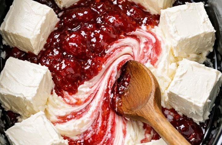 This Slow Cooker 4-Ingredient Strawberry Cheesecake Dip is a velvety, “low-work” appetizer that uses gentle heat to emulsify cream cheese and sour cream into a warm, silk-like custard. By slowly melting strawberry jam and granulated sugar into the dairy base, you create a dip that mimics the flavor of a classic New York-style cheesecake without the need for a water bath or baking. The result is a rich, fruity, and spoonable dessert that stays perfectly warm and fluid for hours in the crock.