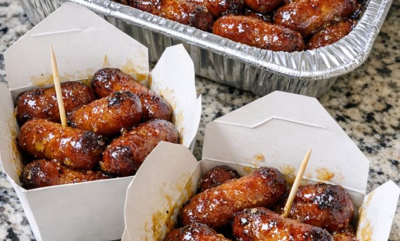 Step 6: Rest and Set: Remove from the oven and let them sit for 5/10 minutes. This is crucial—as the temperature drops slightly, the glaze will thicken into a “clingy” sauce that won’t just run off the sausages when picked up with a toothpick.