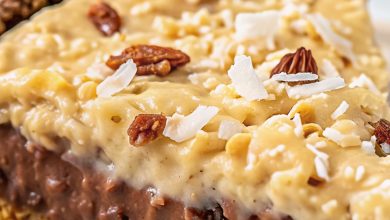 A dreamy no-bake dessert with a silky chocolate base and a rich coconut-pecan topping — perfect for any occasion. 🧂…