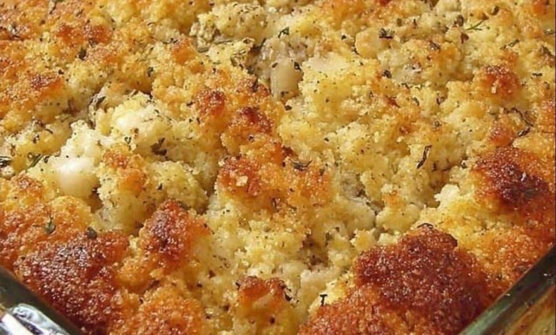 The Bread Texture: For the best results, use “day-old” or slightly stale bread. If your cornbread is fresh, crumble it onto a baking sheet and toast it in a low oven for 10/15 minutes before mixing.