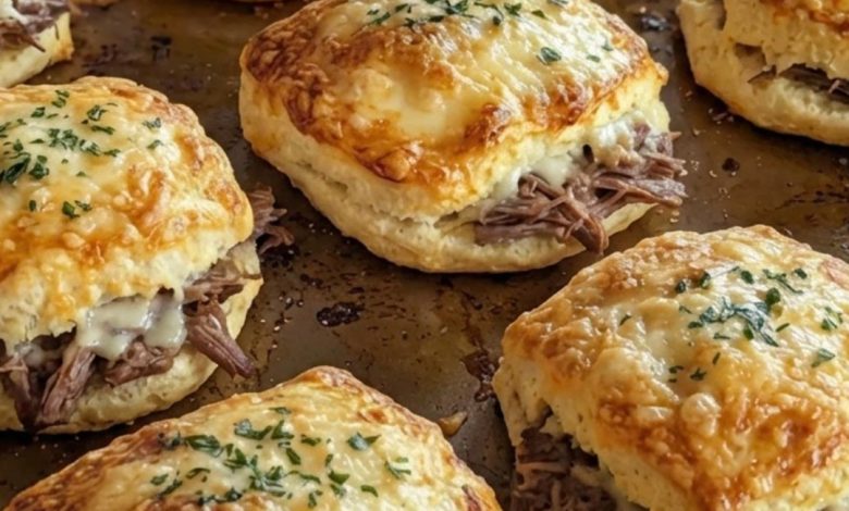 These French Dip Biscuits take all the savory, melty goodness of a classic French Dip sandwich and package it into a flaky, portable biscuit. The secret is the creamy horseradish sauce—it provides a subtle “zing” that cuts through the richness of the roast beef and provolone. By sealing the meat and cheese inside the dough, you create a little steam chamber that keeps the beef incredibly tender while the outside of the biscuit gets perfectly crisp.