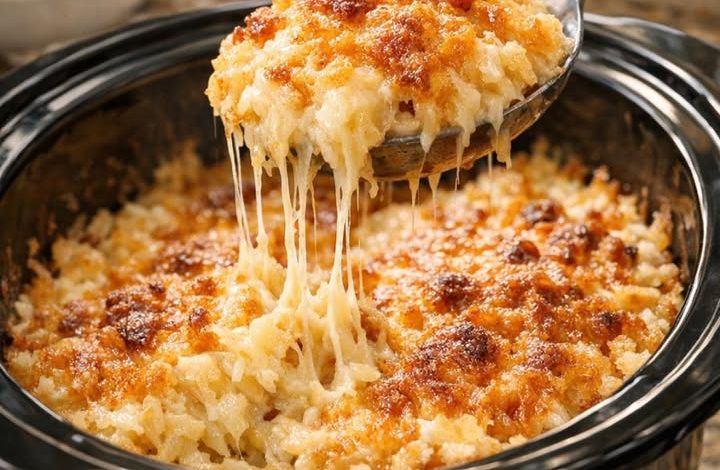 5-Ingredient Slow Cooker Cheesy Shredded Potatoes