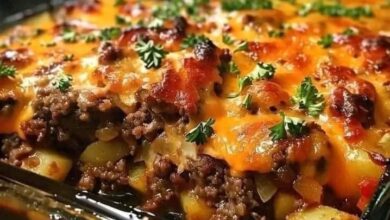 This Cowboy Meatloaf and Potato Casserole is a hearty, all-in-one comfort meal. A savory, seasoned meatloaf is layered between tender…