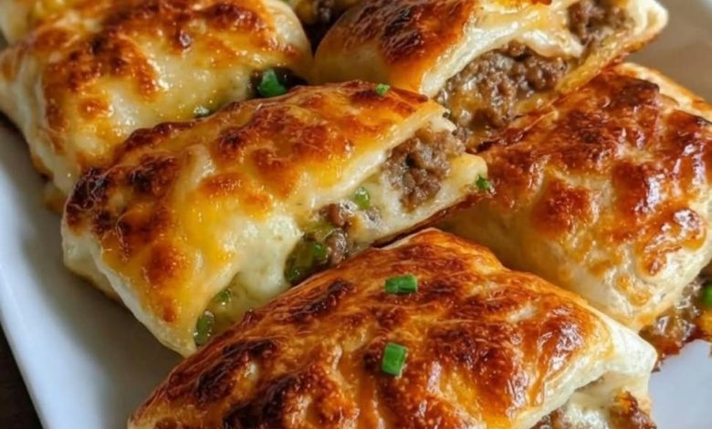 Step 4: Fill and Fold: Unroll the crescent dough and separate it into 8 triangles. Spoon a generous portion of the beef onto the wide end of each triangle and top with a sprinkle of cheddar cheese. Fold the dough over the filling and pinch the edges tightly to seal.
