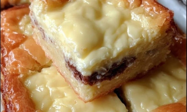 These Chewy Gooey Bars (famously known in some circles as “Chess Squares” or “Neiman Marcus Bars”) are a dessert lover’s dream. By using a dry cake mix as the base, you create a dense, buttery, shortbread-like crust that perfectly supports the decadent cream cheese topping. The magic is in the bake time—pulling them out while the center is still slightly “jiggly” ensures that once they cool, you’re left with a texture that is part cheesecake and part fudge.