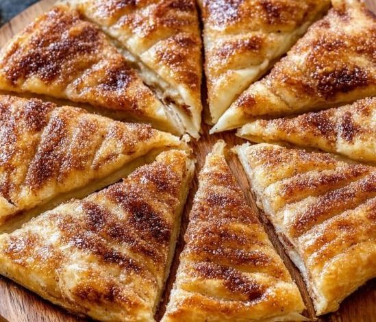This Cinnamon-Sugar Pizza is a quick and delightful dessert that uses refrigerated dough to create a flaky, buttery crust.1 It’s essentially a giant cinnamon roll in pizza form!