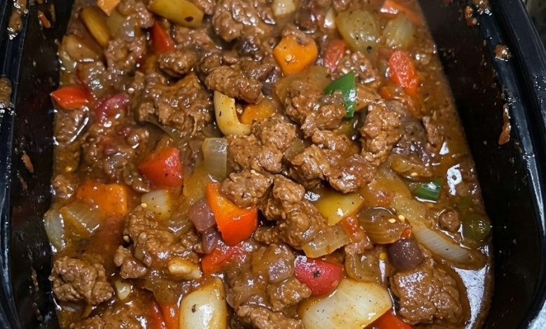 Step 3: Transfer to Crock Pot: Remove the meat and peppers from the skillet and place them into a slow cooker (crock pot) that is lined or prepped, leaving the grease/drippings behind in the skillet. Stir in the 3 tbsp Worcestershire sauce (included for flavor, as it was listed in ingredients but missed in instructions).