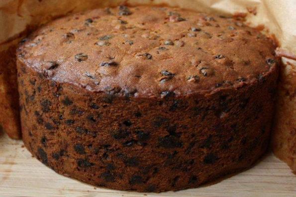 This dense, traditional Christmas cake is packed with a variety of dried fruits, nuts, and warm spices, and is soaked in brandy before baking for a rich flavor.