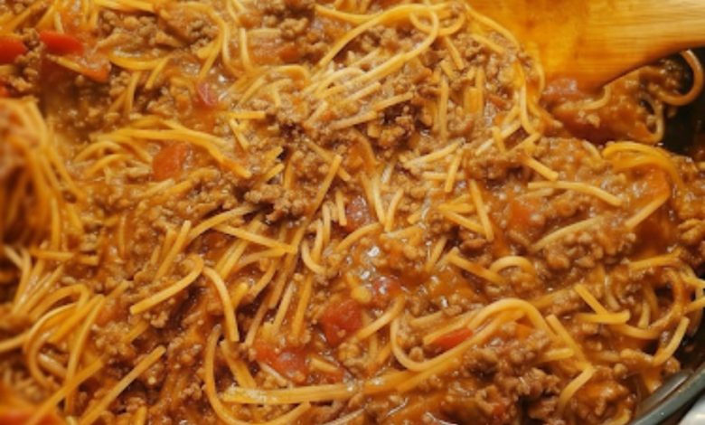 - Step 2: Cook Pasta & Beef: Cook the spaghetti noodles according to package directions, then drain them well. Toss the hot, drained noodles with the melted butter and a pinch of salt and pepper. In a large skillet, brown the ground beef over medium-high heat. Drain any excess fat.