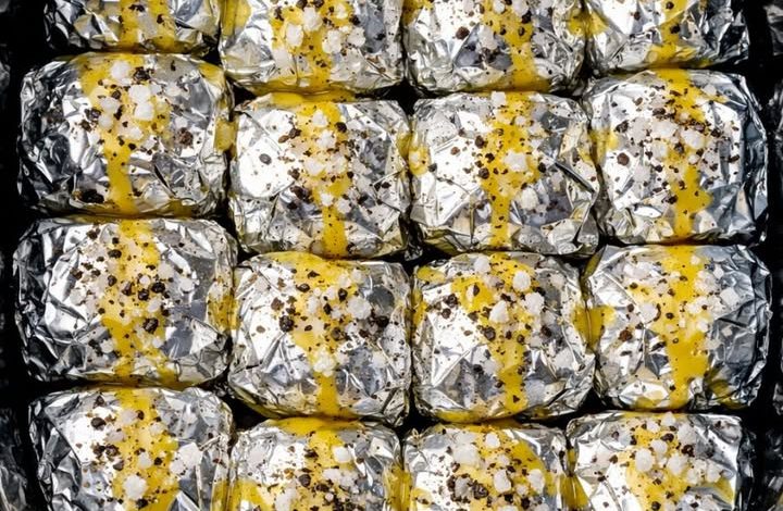 Foil Packet Party: Just 5 ingredients. Make mini foil-wrapped potatoes and stack them like bricks everyone will love what’s inside.