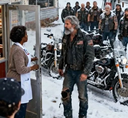 The powerful wave of relief that instantly washed over his hard face was absolute and unmistakable. They began to file in one by one, a slow, imposing parade of frozen leather and black steel. The heavy, overwhelming smell of gasoline, wet wool, and bitter cold air completely filled my small, warm diner.