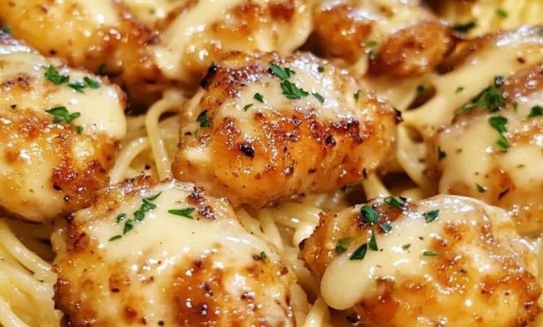 Garlic Butter Chicken Bites with Creamy Parmesan Pasta