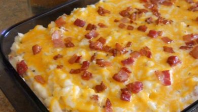 - Transfer to baking dish: Transfer the mixture to the prepared baking dish.