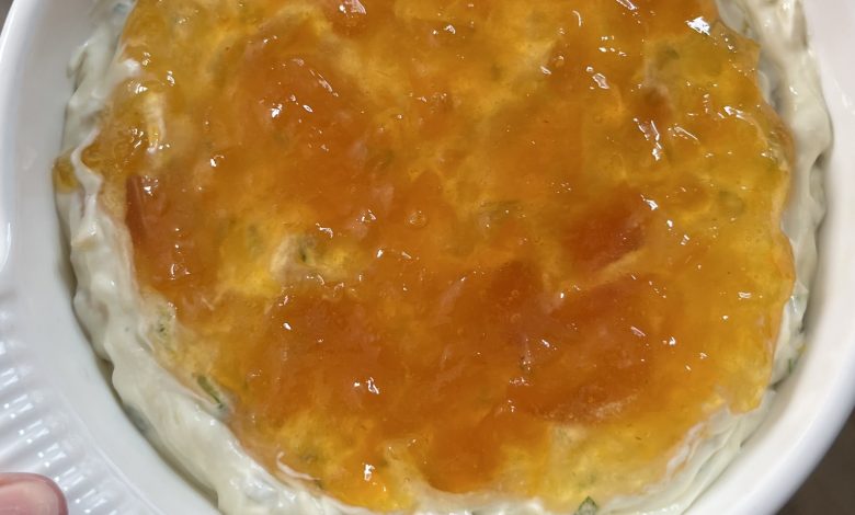 The magic is in the mix: cream cheese and sour cream form a rich base, peach preserves add Southern sweetness, and jalapeños plus green onions bring gentle heat and bite. A pinch of cayenne ties it all together, giving the dip its “knockout” punch.