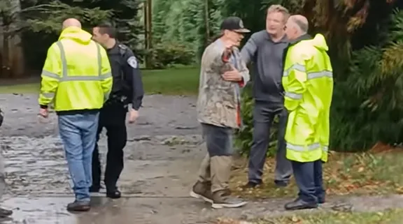 Police officers arrived on the scene swiftly. They were observed speaking with the two famous brothers, who appeared visibly upset and soaking wet from the rain, but thankfully unharmed. Stephen Baldwin, dressed casually, remained near the crumpled SUV while officers inspected the considerable damage to the vehicle. Alec Baldwin, who seemed calm despite his disheveled appearance, stood close by. With his hands in his pockets, he was seen making a phone call while the rain continued to pour down.