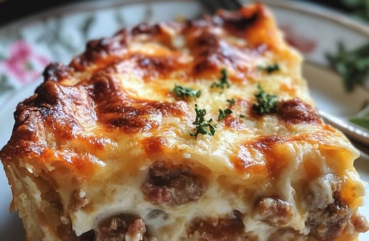 Step 6: Bake: Bake for 30–35 minutes. The pie is done when the egg mixture is set in the center and the crust and cheese are golden brown.