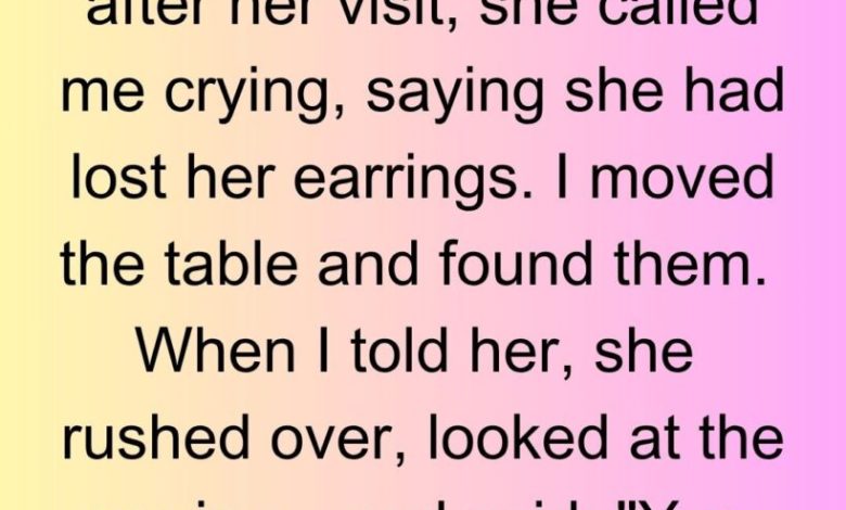 When I told her, she rushed over, looked at the earrings, and said: “Yes, they’re mine! But I’m… so embarrassed. I actually thought someone had stolen them.”