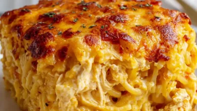 This hearty casserole is a perfect set-it-and-forget-it meal for busy weeknights. Packed with tender chicken, fluffy potatoes, and crispy bacon, all smothered in a cheesy sauce, it’s sure to be a crowd-pleaser.