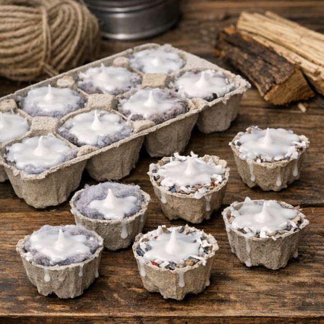 If you enjoy camping or have a fireplace, you can make “eco-friendly fire starters for camping and cozy nights in.” By filling the cardboard cups with bits of lint or shredded paper and adding a little melted wax, you create a powerful tool to start a fire.