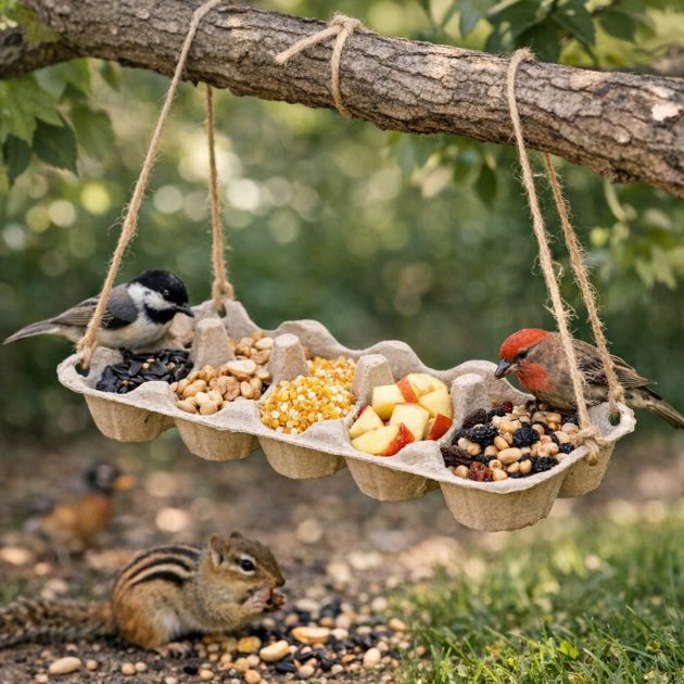 Supporting local wildlife is easy with these cartons. You can make “bird feeders and wildlife treat trays for the backyard” by cutting the carton and filling the sections with seeds or fruit.