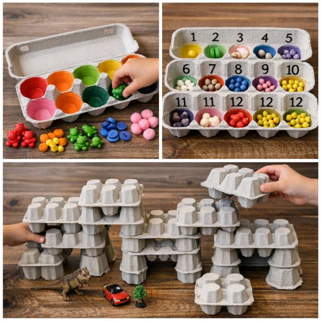For young children, these cartons are great for “kids’ STEM and sensory play: sorting, counting, and building games.” You can use them to teach “counting, sorting, and building skills” by asking kids to put a specific number of buttons or beads into each cup.