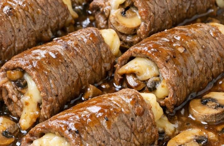 Oven-Baked 4-Ingredient Mushroom Swiss Steak Rolls