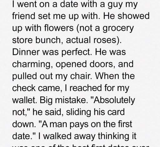 Over handmade pasta and Chianti, conversation flowed easily. We laughed about dating disasters, bonded over ambition, and I found him grounded and attentive. When the check arrived, I reached for my purse, but Eric waved me off with a firm smile: “A man pays on the first date. It’s a matter of principle.” Slightly antiquated, but charming enough. He walked me to my car, waited until I was safely inside, and waved goodbye. Driving home, I felt a rare sense of relief—I had finally gone on a good date.