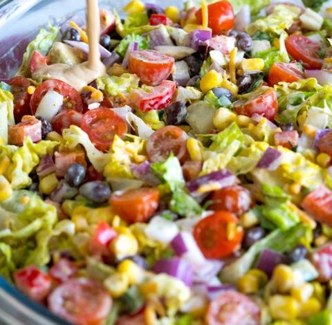 4. Step 4: Dress and Chill: Pour the dressing over the salad and toss gently to coat. Cover the bowl and refrigerate for at least 30 minutes to allow the flavors to meld together.