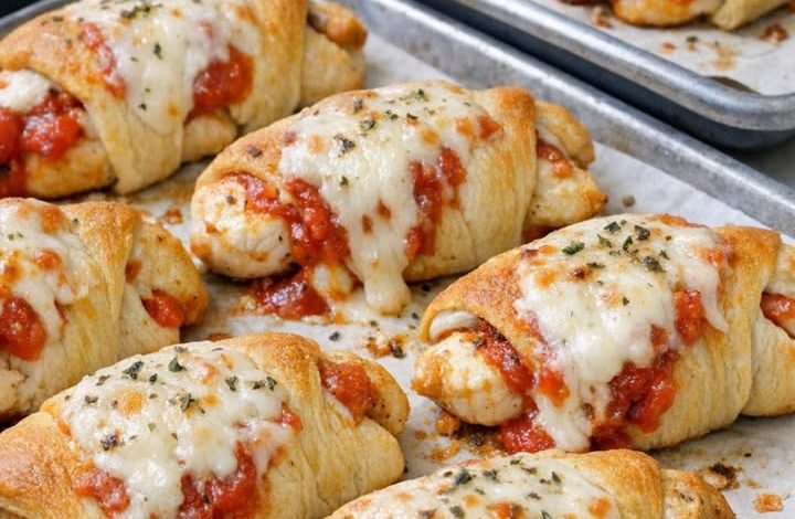 These Oven-Baked 4-Ingredient Chicken Parmesan Crescent Bundles are a brilliant, handheld twist on the classic Italian-American comfort dish. By wrapping raw chicken breast strips directly inside crescent roll dough with thick marinara and mozzarella, you create a “micro-oven” effect for the meat. As the buttery dough puffs and browns, the chicken poaches in the savory tomato sauce, remaining incredibly juicy while the cheese melts into a stretchy, golden seal.