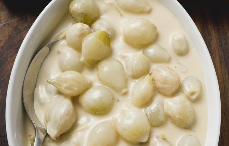 - Step 3: Season and Simmer: Season the sauce generously with nutmeg, salt, and white pepper. Add the blanched and peeled pearl onions to the sauce. Simmer gently for 15-20 minutes, or until the onions are completely tender.