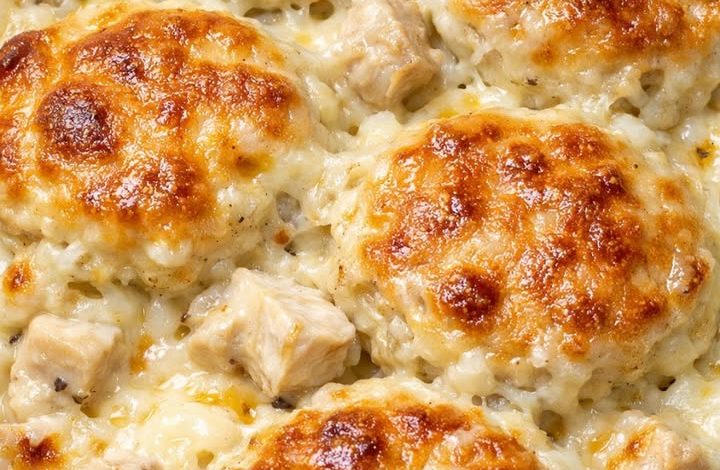 4-Ingredient Chicken Alfredo Biscuit Casserole