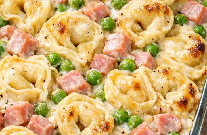 Oven-Baked 4-Ingredient Ham and Pea Tortellini