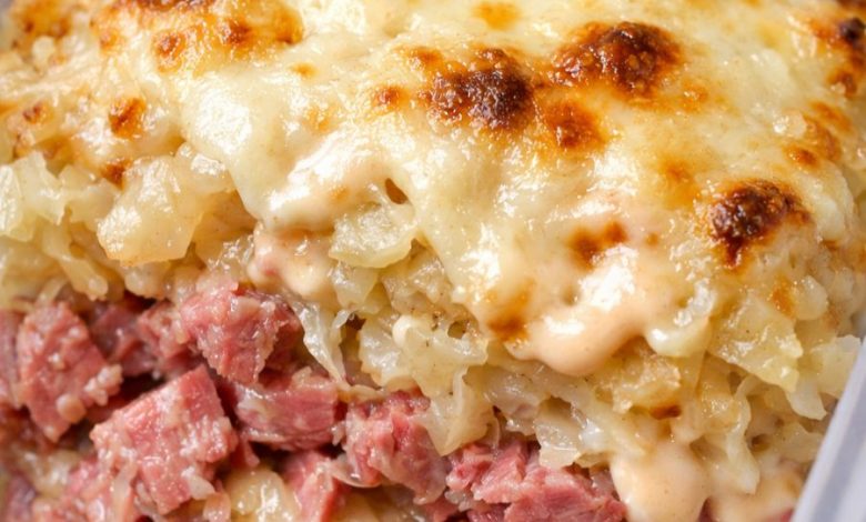 This cheesy, savory bake is the kind of dish that vanishes before you’ve even set the pan down. It captures all the flavors of a classic Midwestern Reuben—corned beef, sauerkraut, Swiss, and tangy dressing—without the bread. Think of it as the heartier cousin of the beloved Reuben dip from church potlucks, only this version is simple enough for a weeknight supper and satisfying enough to feed a crowd.