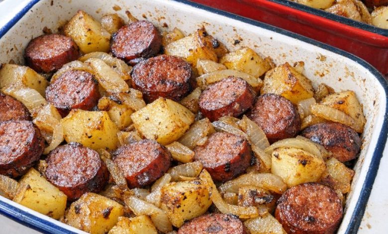 Grandma Bev always said: “If it’s bubbling at the edges, it’s ready to make everyone happy.” This casserole is exactly that kind of dish—simple, cozy, and built from pantry staples. Smoked sausage, onions, and potatoes bake together until the sausage coins are browned and the potatoes turn tender with caramelized edges. It’s classic Midwestern oven fare: practical, budget-friendly, and perfect for feeding a hungry crowd with minimal fuss.