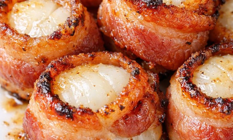 Serve them hot, fresh from the pan, on a simple platter so the golden bacon and juicy centers shine. They pair beautifully with lemon wedges, a bowl of sugar-free garlic aioli, or a light salad of mixed greens. For a crowd, round out the spread with deviled eggs, cheese, and veggies. For a sit-down meal, they make a lovely starter before grilled steak, roasted chicken, or asparagus.