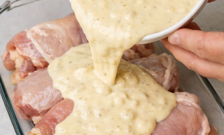 This dish is the definition of weeknight comfort: tender chicken thighs baked in a creamy sauce that practically makes itself. Instead of standing at the stove whisking gravy, you simply stir together one smooth mixture—cream of chicken soup, milk, and a few pantry spices—then pour it over the chicken. As it bakes, the sauce thickens, clings to the meat, and delivers that classic “smothered” flavor straight from Southern kitchens.