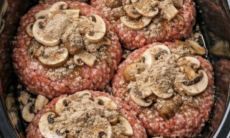 Step 5: Slow Cook: Cover and cook on Low for 4/5 hours. The patties will become incredibly tender, and the onions will melt into the savory gravy.