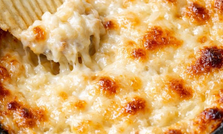 ✨ Gooey, golden, and irresistibly simple—this dip proves that the best potluck recipes don’t need fuss, just three ingredients and a hot oven.
