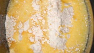 - In a large bowl, combine the dry ingredients: sugar, flour, baking powder, and salt.