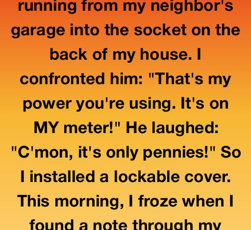 I went straight over and confronted him. “That’s my power you’re taking,” I said firmly. “It’s running on MY meter!” He simply laughed it off, trying to make it seem like a small thing. “C’mon, it’s only pennies!” he chuckled. Despite his casual attitude, I was upset. It felt like stealing, no matter how little electricity it was. So, to stop it from happening again, I went out and installed a lockable cover over the outdoor socket.