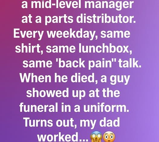 But when he died, a man in uniform came to the funeral. That’s when the truth surfaced: my father wasn’t a manager at all. He was a maintenance worker — the one who kept an entire facility running quietly behind the scenes. The man who came to honor him said, “Your dad saved our day more times than I can count. He never wanted credit, but he deserved all of it.”