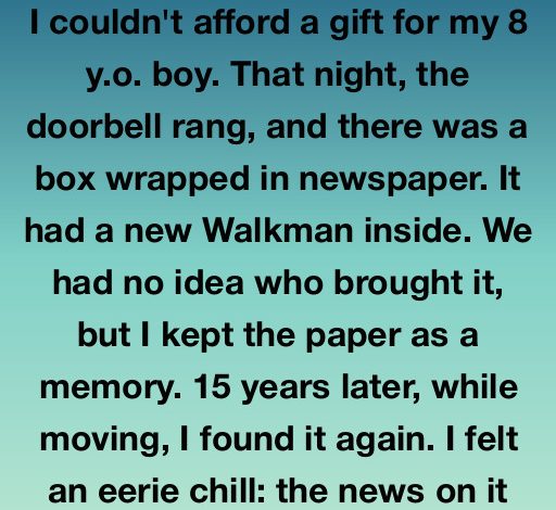 The gift had been forgotten for many years, becoming part of the family legend we fondly called “the mystery Walkman.” It was only fifteen years later, while preparing to move our belongings, that I stumbled upon the old, yellowed newspaper again. A sudden, strange feeling—an eerie chill—ran through me as I looked at the headlines. The news stories on the paper were from early December 2001 and described a small, local charity drive focused on supporting families who were struggling during the holidays.