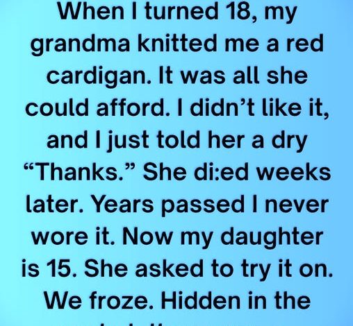 At eighteen, a young woman received a handmade red cardigan from her grandmother. Distracted by adolescence, she offered little thanks. Weeks later, her grandmother passed away, leaving the cardigan as a silent heirloom. Years later, her own daughter discovered two concert tickets tucked into its lining—tickets to her favorite band, purchased in secret by her grandmother. What once seemed ordinary became extraordinary: a timeless reminder that love often works invisibly, waiting to be discovered.