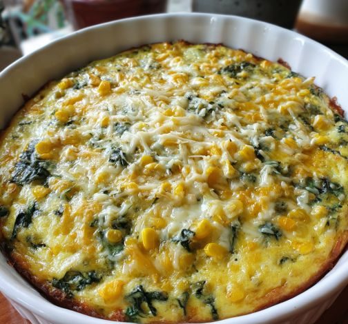 This Oven Baked Cheesy Corn and Spinach Casserole is a vibrant, vegetable-forward side dish that uses a simple savory custard to bind the ingredients into a light, souffle-like texture. By whisking eggs, milk, and a small amount of flour, you create a structural base that suspends the corn kernels and fresh spinach evenly throughout the dish. The cheddar cheese provides a salty, melted crust that complements the natural sweetness of the corn, delivering a colorful and balanced casserole that is as nutritious as it is comforting.