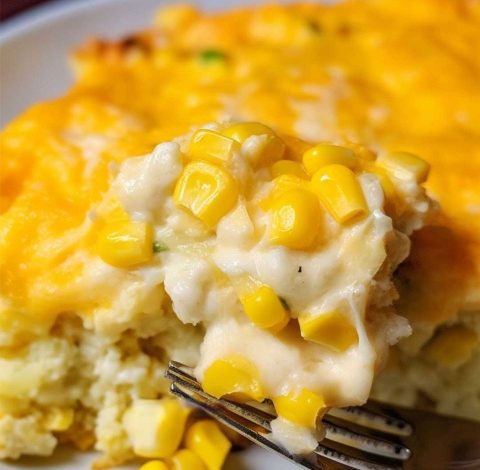 This rich and comforting casserole blends sweet corn with a creamy mixture of butter, cream cheese, and sharp cheddar, creating an easy and delicious side dish.