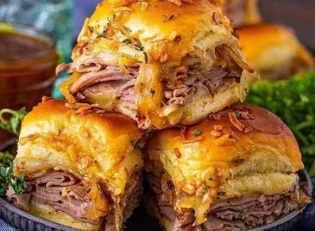6. Serve: Slice into individual sliders and serve hot with au jus for dipping.