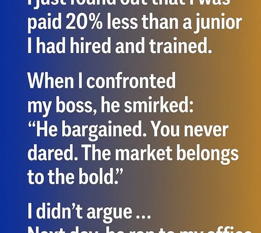 After twelve years of dedication, I discovered I was earning 20% less than a junior employee I had personally hired and trained. When I brought it up to my boss, he shrugged with a smirk: “He bargained. You never did. The market favors the bold.”