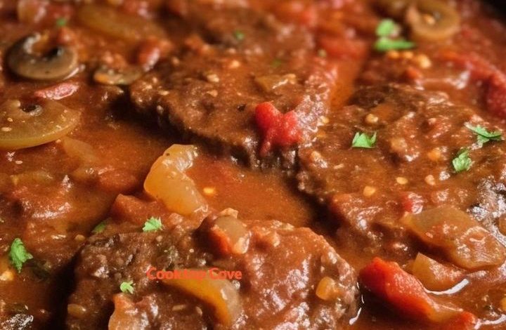 Step 7: Serve: Once the meat is fork-tender, carefully remove the skillet from the oven. Serve the Swiss steak hot, garnished with fresh parsley if desired.