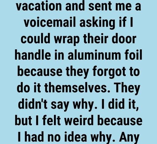 At first glance, wrapping aluminum foil around a door handle seems like one of those odd ideas you’d scroll past online—improvised, even a little silly. But this small habit has quietly gained traction among homeowners looking for practical, low-cost ways to boost security. What looks trivial actually blends psychology, awareness, and basic physics into a surprisingly effective tool.